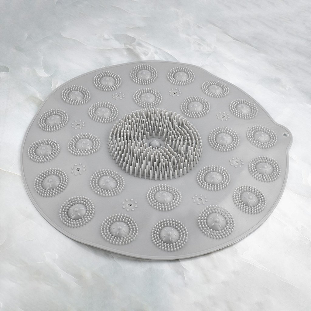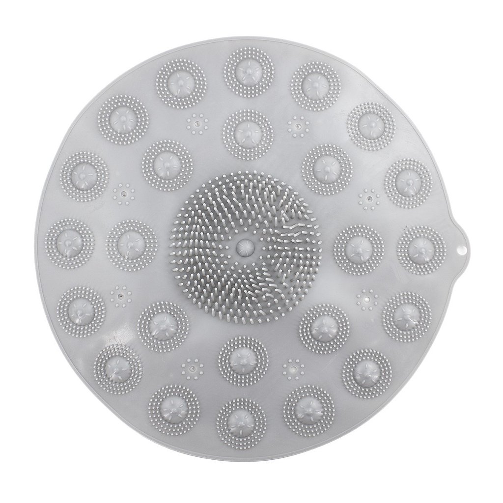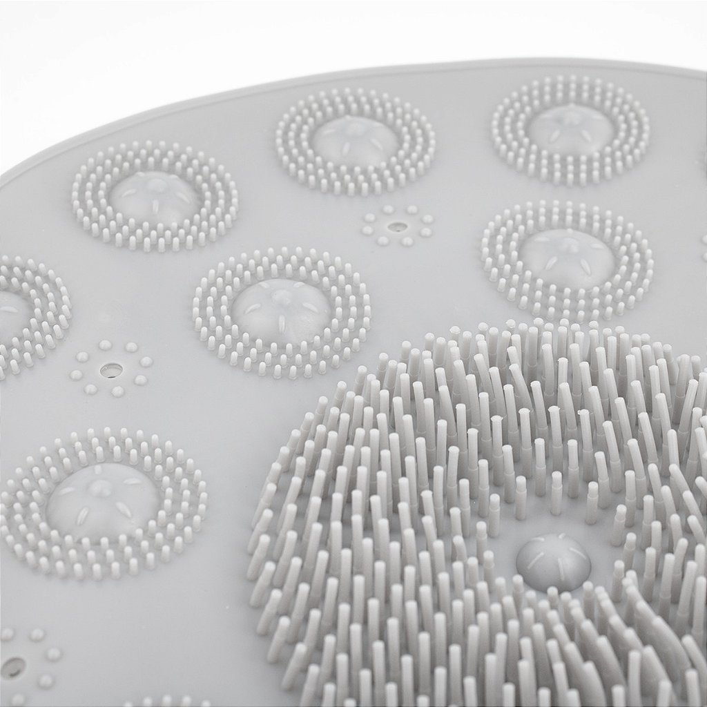 O Tapete Antiderrapante Massageador proporciona a limpeza dos seus pés durante o banho com as suas macias cerdas de silicone. Fazendo também uma delicada massagem relaxante, trazendo firmeza de segurança por ser antiderrapante. Possui ventosas na parte inferior para aderência ao chão e servindo também para grudar no azulejo com furos para escorrer a água.