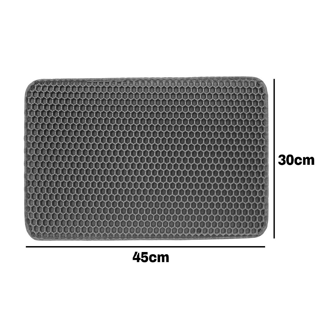O Tapete Higiênico Coletor de Areia foi feito para deixar o ambiente do seu pet mais limpo e agradável. Ao sair da caixa de areia os gatos carregam em suas patas e pelos, algum resíduos do material da caixa higiênica, com seu design inteligente de camada dupla ajuda a coletar essa areia. Ela é feita em EVA, sendo um material impermeável, resistente e maleável, permitindo jogar a areia de volta na caixa. Possui aberturas em suas laterais para facilitar a limpeza do tapete.